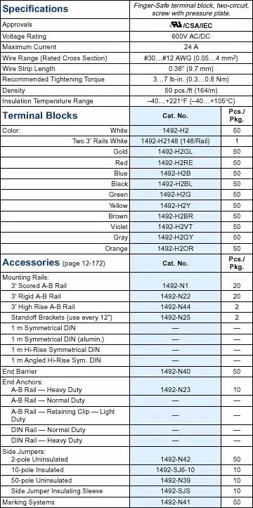 Finger-Safe Double Circuit High Density Block, Screw w/ Pressure Plate, #30 – #12 AWG, White, Pkg. Qty. of 50