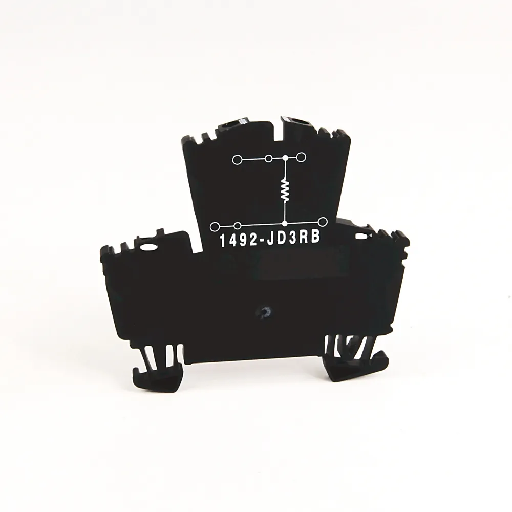 1492-J IEC Terminal Block, Two-Circuit Feed-Through Block, 2.5 mm (# 24 AWG – # 12 AWG), Two level block with a selectable resistor value between the 2 levels, Black (Standard), 510 Ohm Resistance
