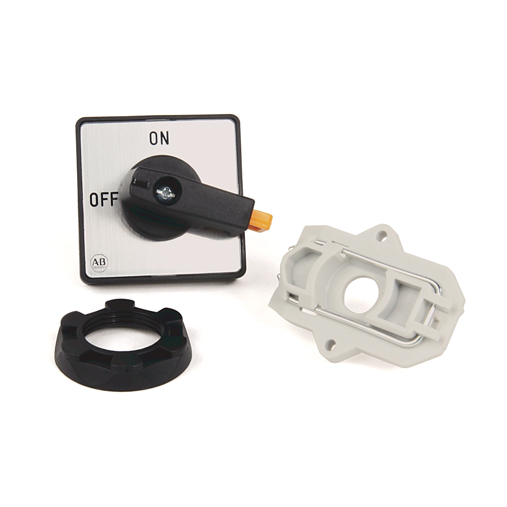 IEC Control and Load Switch Actuator, Type E, Gray/Black, 48mm x 48mm, Legend Text: OFF-ON (90°)