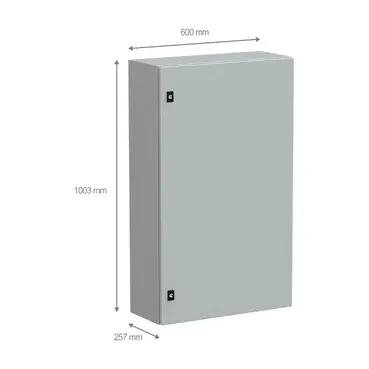 Spacial CRN is a multi-purpose wall-mounting enclosure designed for harsh environments It is certified by UL, cUL, and DNV-GL and has an IK10 (IEC62262) rating and an IP66 rating (IEC60529) This enclosure has a nominal height, width, and depth of 1000mm, 600mm, and 250mm, respectively The enclosure is constructed of steel with an epoxy-polyester powder surface finish and is grey-coloured (RAL7035) It consists of a body, a cable gland plate, a plain door with a 3mm double-bar lock, and a galvanised steel mounting plate The door can be opened up to 120°, allowing easy access to the equipment inside It is possible to change the opening side of the door (reversible)