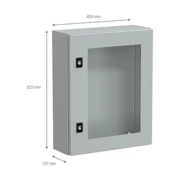 The Spacial CRN wall-mounting compact enclosure comes in grey colour and designed for multi-purpose application. This compact enclosure is composed of body, cable gland plate, door, lock. The compact enclosure is made of steel (body), steel and security glass (door), making it durable and resistant. It has IP66 and IK08 protection level, which can help protect against impact, water and dust. The dimensions are (W) 400 mm x (H) 500 mm x (D) 150 mm. It features a back welded with double profile forming a protected sealed area, sides made from a single folded section. The door type is glazed, it has 1 door(s) and the door opening side is reversible. Equipped with a 3 mm double-bar lock lock type. Featuring a epoxy-polyester powder surface finish, which ensures a bright, even and inviting finish.