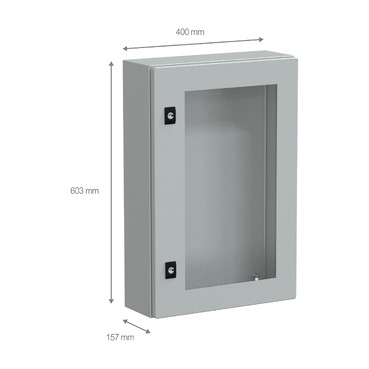 The Spacial CRN wall-mounting compact enclosure comes in grey colour and designed for multi-purpose application. This compact enclosure is composed of body, cable gland plate, door, lock. The compact enclosure is made of steel (body), steel and security glass (door), making it durable and resistant. It has IP66 and IK08 protection level, which can help protect against impact, water and dust. The dimensions are (W) 400 mm x (H) 600 mm x (D) 150 mm. It features a back welded with double profile forming a protected sealed area, sides made from a single folded section. The door type is glazed, it has 1 door(s) and the door opening side is reversible. Equipped with a 3 mm double-bar lock lock type. Featuring a epoxy-polyester powder surface finish, which ensures a bright, even and inviting finish.