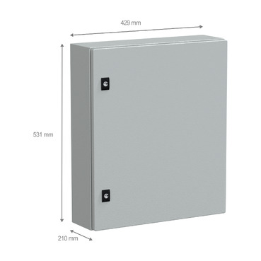 Spacial CRN steel wall-mounting enclosure is designed for multi-purpose applications It has a nominal height, width, and depth of 600mm, 500mm, and 150mm, respectively The enclosure is grey-coloured (RAL 7035) with an epoxy-polyester powder surface finish It is designed for use in harsh environments, withstanding high impact due to its IK10 (IEC62262) rating and high resistance to dust and water with an IP66 rating (IEC60529) The enclosure consists of a body, a cable gland plate, a plain door with a three-point lock and a 3mm double-bar insert, and a galvanised steel mounting plate It is possible to change the opening side of the door (reversible) The door, the cable gland plate, and the mounting plate can be removed for maintenance purposes The net weight of the enclosure is 14,118kg Featuring a epoxy-polyester powder surface finish, which ensures a bright, even and inviting finish. This device is qualified as a green premium product, with minimal use of hazardous substances. This compact enclosure is c.UL certified.