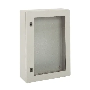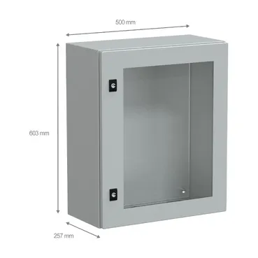 The Spacial CRN wall-mounting compact enclosure comes in grey colour and designed for multi-purpose application. This compact enclosure is composed of body, cable gland plate, door, lock. The compact enclosure is made of steel (body), steel and security glass (door), making it durable and resistant. It has IP66 and IK08 protection level, which can help protect against impact, water and dust. The dimensions are (W) 500 mm x (H) 600 mm x (D) 250 mm. It features a back welded with double profile forming a protected sealed area, sides made from a single folded section. The door type is glazed, it has 1 door(s) and the door opening side is reversible. Equipped with a 3 mm double-bar lock lock type. Featuring a epoxy-polyester powder surface finish, which ensures a bright, even and inviting finish.