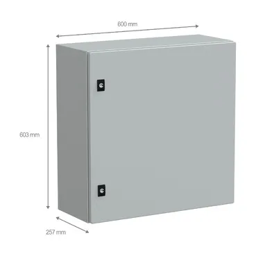 TheSpacial CRN steel wall-mounting enclosure is designed for multi-purpose applications and is certified by UL, cUL, and DNV-GL It is designed for use in harsh environments, withstanding high impact due to its IK10 (IEC62262) rating and high resistance to dust and water with an IP66 rating (IEC60529) This enclosure has a nominal height, width, and depth of 600mm, 600mm, and 250mm, respectively The enclosure is grey-coloured (RAL7035) with an epoxy-polyester powder surface finish The enclosure consists of a body, a cable gland plate, a plain door, and a lock The door can be opened up to 120°, allowing easy access to the equipment inside It is possible to change the opening side of the door (reversible) The door has a three-point lock with a 3mm double-bar insert The door and the cable gland plate can be removed for maintenance purposes The net weight of the enclosure is 15,094kg