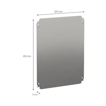 Plain mounting plate for Spacial CRN, S3D and S3X, and Thalassa PLM. Multi purpose accessory of dimensions 450 x 350 mm, suitable for enclosures 500 x 400 mm (height x width). Made in galvanized steel…
