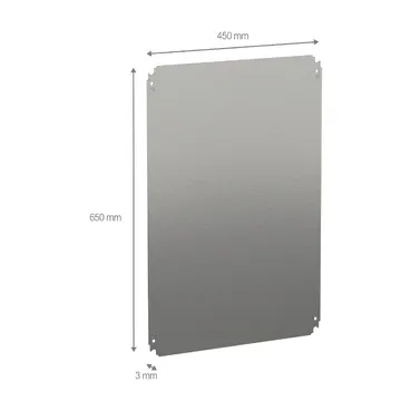 Plain mounting plate for Spacial S3DC, S3DCD. For enclosures H is700 x W is500 mm. Multi-purpose mounting accessory. Step slide mounting location or direct fixing on backstuds (M8 screws). 135 Kg permissible load. Galvanised steel. White color. Set of 1. Only US market application.
