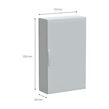 This PLA version of the Thalassa PLA is a versatile, floor-standing enclosure that is suitable for various applications It is composed of a sealed top and bottom part, assembled with two side parts The enclosure measures 1250mm in height, 750mm in width, and 320mm in depth, and is made of polyester reinforced with fiberglass, providing durability and resistance to harsh environments, including outdoor and industrial settings The enclosure is available in grey (RAL 7035) and comes with one plain front door, one rear panel, and one plinth The door is designed to open up to 120° from either the right or left side, allowing easy access to the equipment inside It features a four-point lock with a 5mm double-bar insert for added security The door and rear panel are removable for maintenance purposes