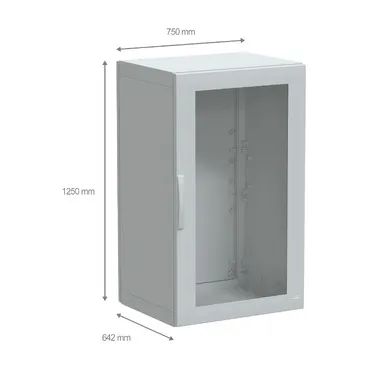 Floor standing polyester enclosure, PanelSeT PLA, glazed door, completely sealed, 1250x750x620mm, IP65, IK08