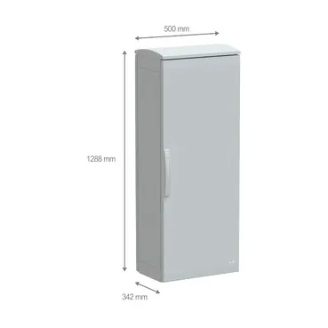 Floor standing polyester enclosure, PanelSeT PLA, plain door, ventilated canopy, 1250x500x320mm, IP44, IK10