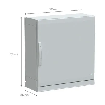 This PLAZ version of the PLA is a versatile, floor-standing enclosure that is suitable for various applications It measures 750mm in height, 750mm in width, and 320mm in depth It is made of polyester reinforced with fiberglass, providing durability and resistance to harsh environments, including outdoor and industrial settings The enclosure is available in grey (RAL 7035) and consists of two side parts, one plain front door, one rear panel, and one plinth The door can be opened up to 120° from either the right or left side, and is secured with a two-point handle lock and a 5mm double-bar insert The door and rear panel are removable for easy maintenance