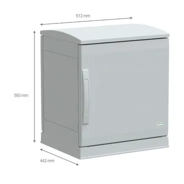 Floor standing polyester enclosure, PanelSeT PLA, open bottom, ventilated canopy, 500x500x420mm, IP44, IK10