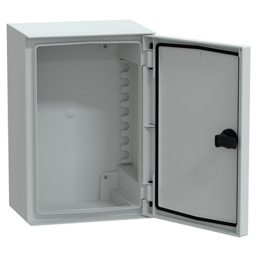 This PLM is a wall-mounted enclosure that is suitable for multi-purpose applications The enclosure has a nominal height, width, and depth of 310 mm, 215 mm, and 160 mm, respectively It is made of ABS + PC, which offers durability and resistance to industrial and outdoor environments The enclosure comes in a grey (RAL 7035) color The enclosure consists of one body, one door, and one lock The door is plain and can be opened from the front and has a 3 mm double-bar lock The enclosure offers high protection against dust and water with an IP66 rating (IEC 60529)