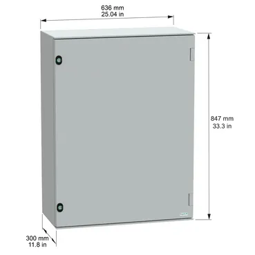 Wall mounted polyester enclosure, PanelSeT PLM, plain door, with metallic plate, 847x636x300mm, IP66, IK10, RAL 7035