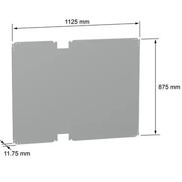Thalassa PLA metallic mounting plate. For enclosure H is1000 x W is1250 mm. Step slides mounting location or on back inserts location (fixing by screw type M8). Plain mounting plate. 150 Kg permanent permissible load. Galvanised Steel. Grey RAL 7035.