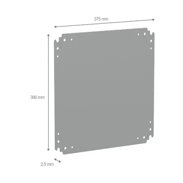 Thalassa PLA/PHD metallic mounting plate. For enclosure H is500 x W is500 mm. Step slides mounting location or on back inserts location (fixing by screw type M8). Plain mounting plate. 150 Kg permanent permissible load. Galvanised Steel. Grey RAL 7035.