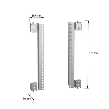 Partial fixed racks allow mounting rackable electronic equipment with 19″ server racks in Spacial SF and Spacial SM enclosures The height is 400mm The depth is 60mm Supports mounting of 8 units It is possible to fasten cross rails Depth adjustable in steps of 25mm The kit supplied with fixing elements and 2 uprights