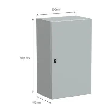 Spacial S3D is a multi-purpose, wall-mounting enclosure designed for use in harsh environments It is certified by LR, UL, GL, DNV, BV and cUL and has a NEMA 4X/13 rating as well as an IK10 rating (IEC62262) and an IP66 rating (IEC60529) The enclosure has a nominal height, width and depth of 1000mm, 600mm and 400mm, respectively It is made of steel with an epoxy-polyester powder surface finish, and is grey-coloured (RAL 7035) The enclosure consists of a body, one door with a lock, one cable gland plate and one mounting plate The door can be opened up to 120°, allowing easy access to the equipment inside