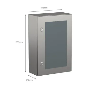 Wall mounted enclosure, PanelSeT S3X, stainless steel 304L, glazed door, 600x400x200mm, IP66