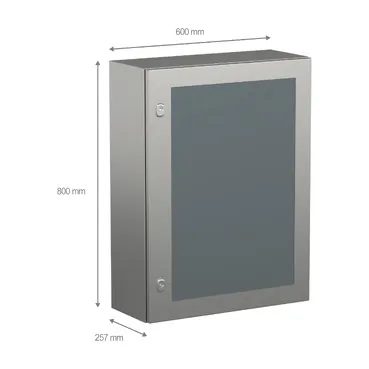Spacial S3X stainless steel 304L wall-mounting enclosure is designed for multi-purpose applications and it is perfect for harsh environments It has an IK08 rating (IEC62262) and an IP66 rating (IEC60529) providing a high level of protection against dust and water It has a nominal height, width and depth of 800mm, 600mm and 250mm respectively The enclosure has a Scotch-Brite® brushed surface finish and it is composed of a body, a Securit glass door and a two points lock with a 3mm double-bar insert The door can be opened up to 120°, allowing easy access to the equipment inside It is possible to change the opening side of the door (reversible) The door can be removed for maintenance purposes