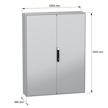 Spacial SM monobloc compact steel enclosure with 2 plain front doors. 1599 x 1200 x 300 mm. Back panel welded, without mounting plate. 4 point door locking system with handle DB 5mm. Steel made. Prote…