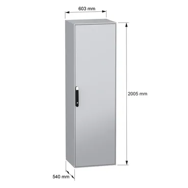 Spacial SM monobloc compact steel enclosure with plain front door. 2000 x 600 x 500 mm. Back panel welded, without mounting plate. 4 point door locking system with handle DB 5mm. Steel made. Protectio…