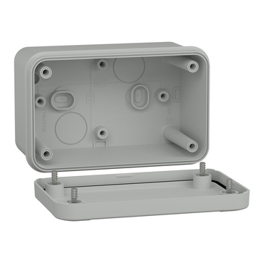 This TBS is a wall-mounted box made of ABS that is suitable for multi-purpose applications The box has a height, width, and depth of 116 mm, 74 mm, and 62 mm, respectively The internal dimensions of the box are 105 mm x 65 mm x 55 mm The box is made of ABS (acrylonitrile butadiene-styrene), which offers resistance to impact and high temperatures The box comes in a grey (RAL 7035) color It has a low plain cover that is fixed with metal screws The box has a class II electrical insulation that prevents electric shocks and allows the building of totally insulated solutions