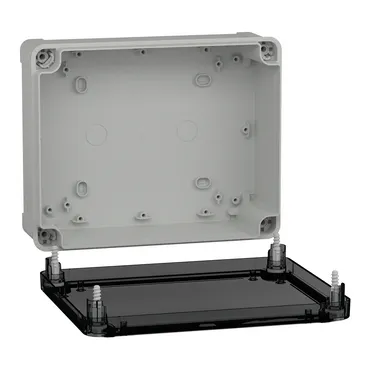 This TBS is a wall-mounted box made of ABS that is suitable for multi-purpose applications The box has a height, width, and depth of 241 mm, 194 mm, and 87 mm, respectively The internal dimensions of the box are 225 mm x 175 mm x 80 mm The box is made of ABS (acrylonitrile butadiene-styrene), which offers resistance to impact and high temperatures The box comes in a grey (RAL 7035) color and a transparent finish It has a low transparent cover that is fixed with captive flat screws The box has a class II electrical insulation that prevents electric shocks and allows the building of totally insulated solutions