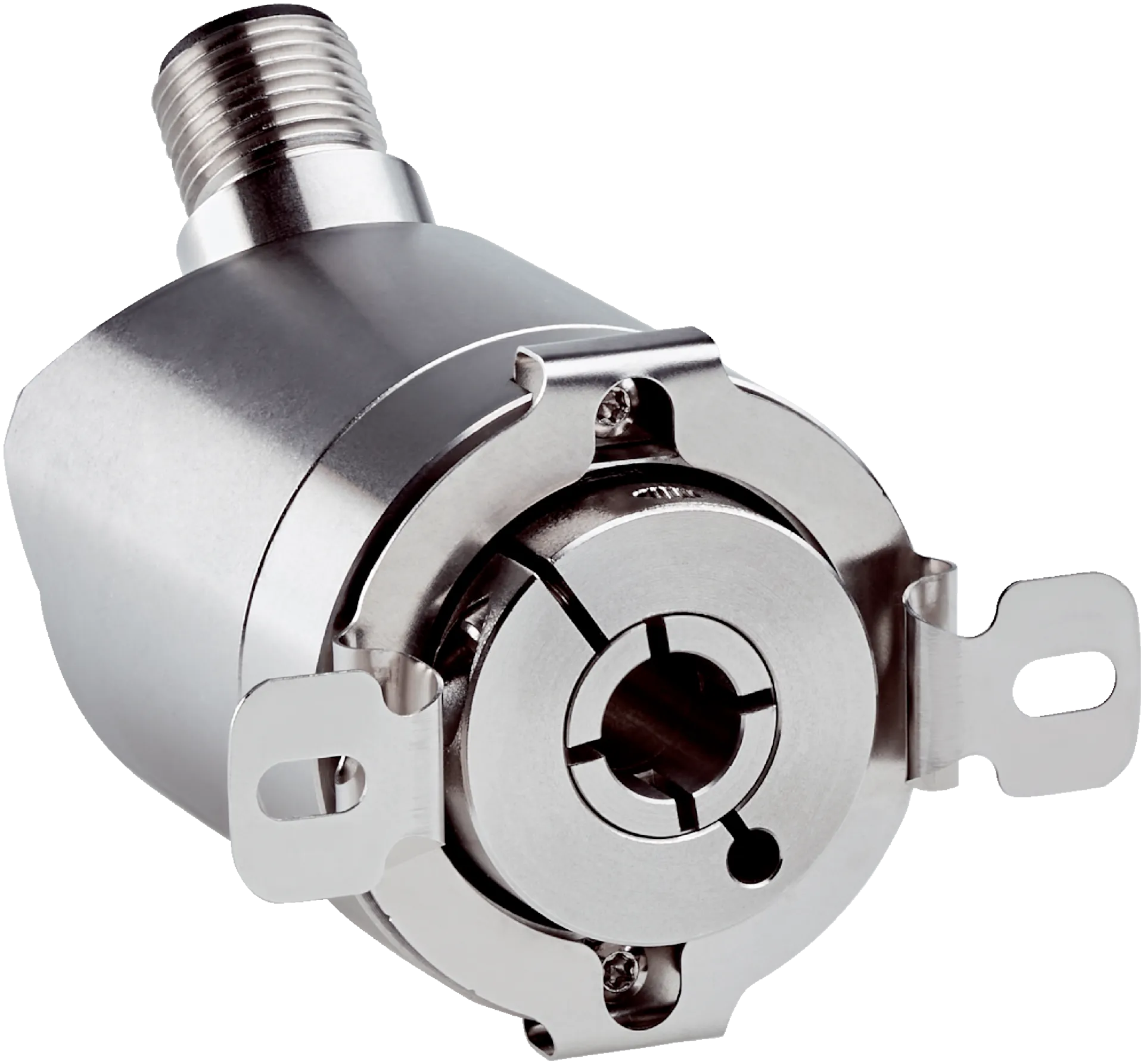 Absolute encoders | AHS/AHM36 | AHM36I-BAJC014X12 | Singleturn or multiturn version: Multiturn | Max. resolution: 14 bit x 12 bit (16,384 x 4,096) | Mechanical design: Blind hollow shaft 6 mm (Front clamp) | Communication interface: SAE J1939, programmable | Connection type: Male connector, M12, 5-pin, universal | Programming interface: Over PLC-Engineering-Tool, over handheld programming tool | Encoder material / Enclosure rating: Stainless steel 1,4305 / IP67, IP69K