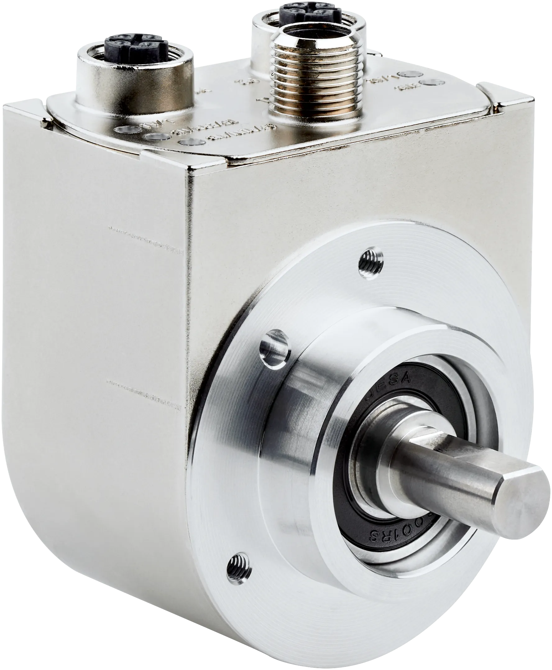 Absolute encoders | ANS/ANM58 | ANM58B-FENNA0000201000XX018X16 | Singleturn or multiturn version: Multiturn | Max. resolution: 18 bit x 16 bit (262,144 x 65,536) | Mechanical design: Solid shaft face mount flange 10 mm x 19 mm (Round) | Communication interface: PROFINET, programmable | Connection type: Male connector, 1x, M12, 4-pin, radial, Female connector, 2x, M12, 4-pin, radial | Programming interface: Over PLC-Engineering-Tool