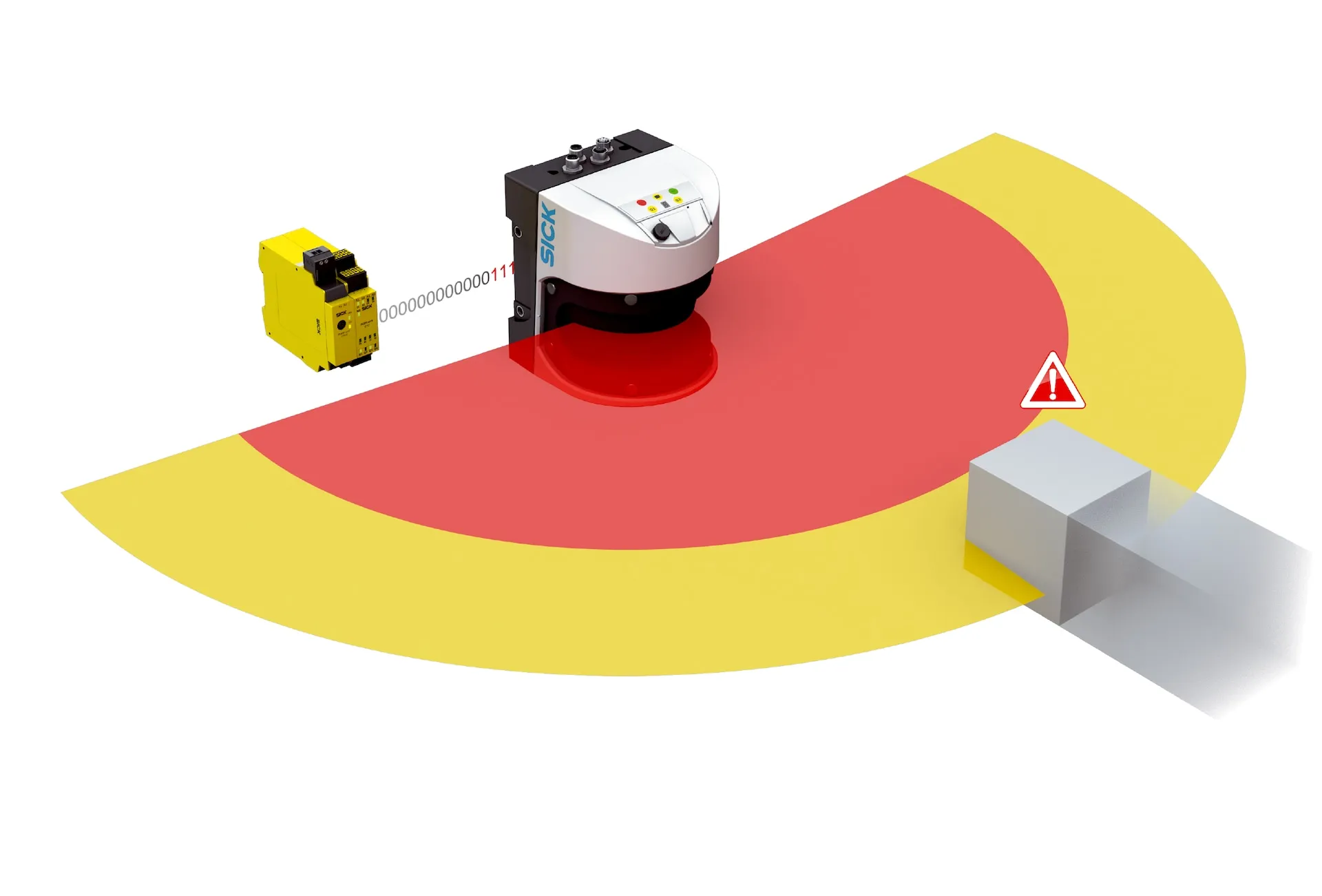 | Output data | Alarm via control signalWarning field intrusion, stop field intrusionSystem test errorContamination warning |