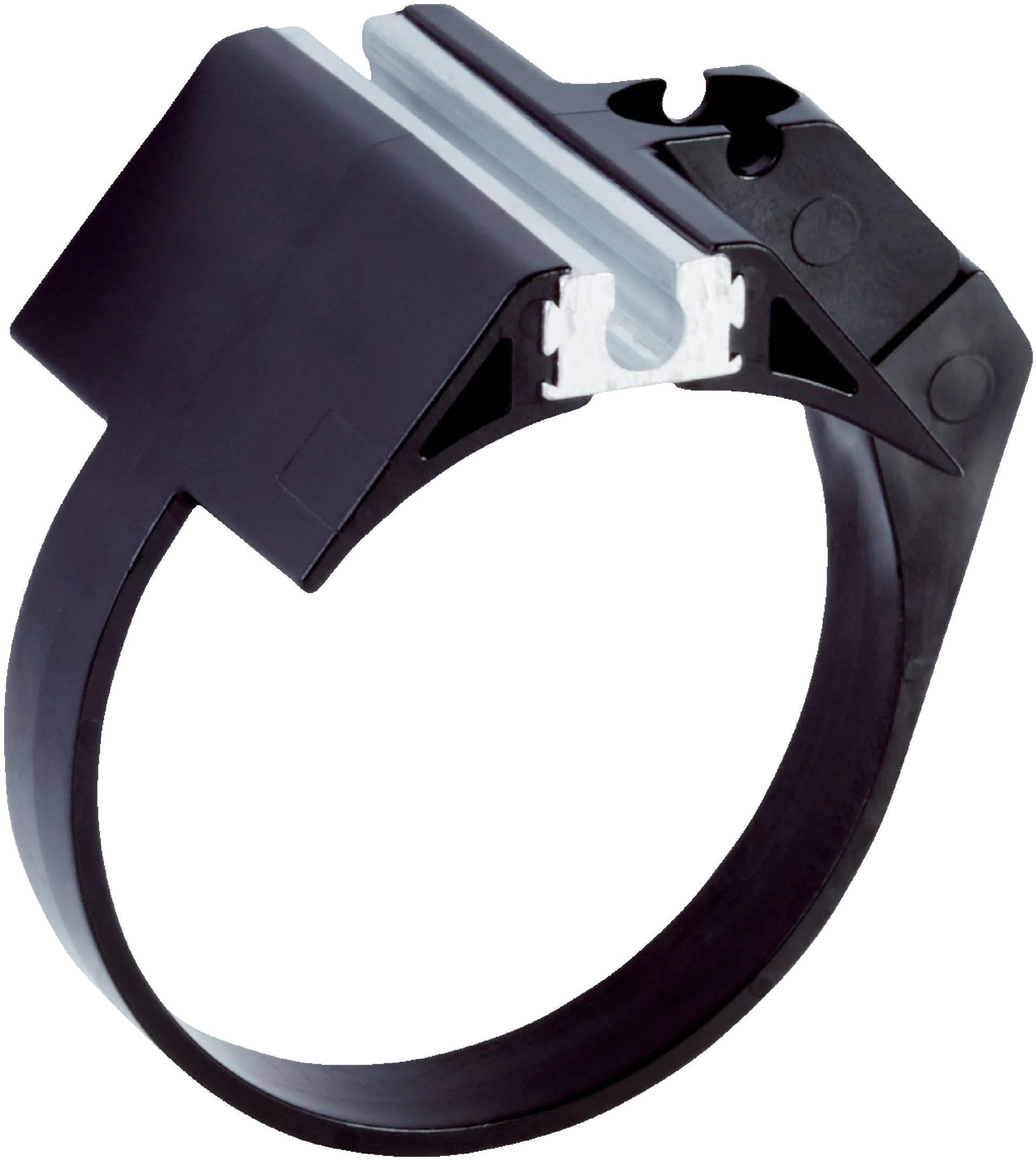 Mounting systems | Brackets | BEF-KHZ-RC-40 | Description: Mounting bracket on round body cylinder with piston diameter of 40 mm, ambient temperature min 0 °C max 50 °C | Material: Plastic, Aluminum | Details: Plastic, Aluminum | Packing unit: 1 piece | Suitable for: C-slot