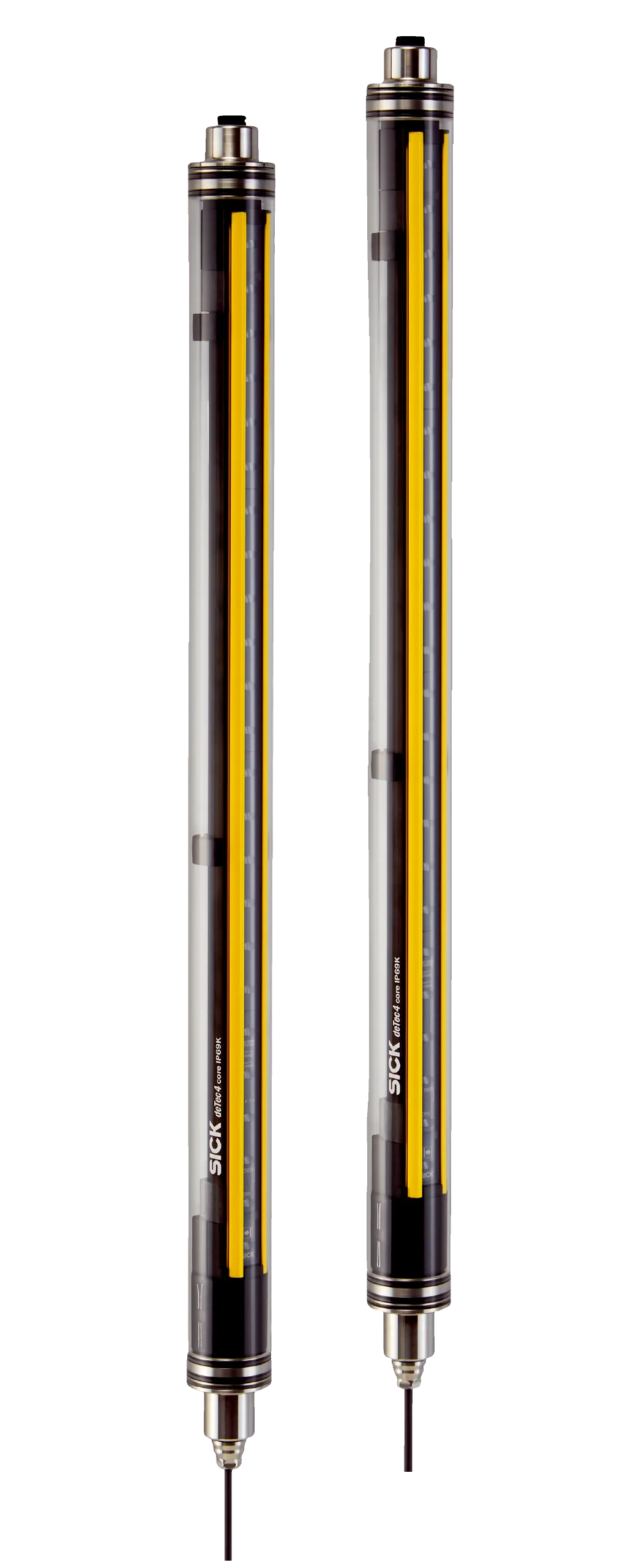 Safety light curtains | deTec | C4C-SB06030A10000, C4C-EB06030A10000 | Product version: deTec4 Core IP69K | System part: Pair | Application: Areas with special hygiene requirements | Safety level: PL e, SIL 3, Type 4 | Resolution: 30 mm | Scanning range: 12.5 m | Protective field height: 600 mm | Connection type: Connecting cable, 15 m, flying leads, 5-wire | Enclosure rating: IP65, IP66, IP67, IP69K | Items supplied: Sender in IP69K protective housing with connecting cable, 15 m, receiver in IP69K protective housing with connecting cable, 15 m, test rod with diameter corresponding to the resolution of the safety light curtain, safety instruction, Mounting instructions, Operating instructions for download