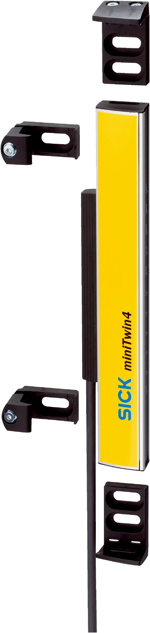 Safety light curtains | miniTwin | C4MT-09014ABB03FE0 | System part: 1 Twin-Stick | Usage: miniTwin4 as a standalone device, miniTwin4 as last guest for 2- or 3-device cascade | Mounting system type: C-fix or L-fix bracket | Safety level: PL e, SIL 3, Type 4 | Resolution: 14 mm | Scanning range: 5 m | Protective field height: 900 mm | Connection type: Male connector M12, 5-pin | Enclosure rating: IP65 | Items supplied: Twin stick, system plug, C-Fix and L-Fix bracket, 2 pieces each, test rod with diameter corresponding to the resolution of the safety light curtain, safety instruction, Mounting instructions, Operating instructions for download