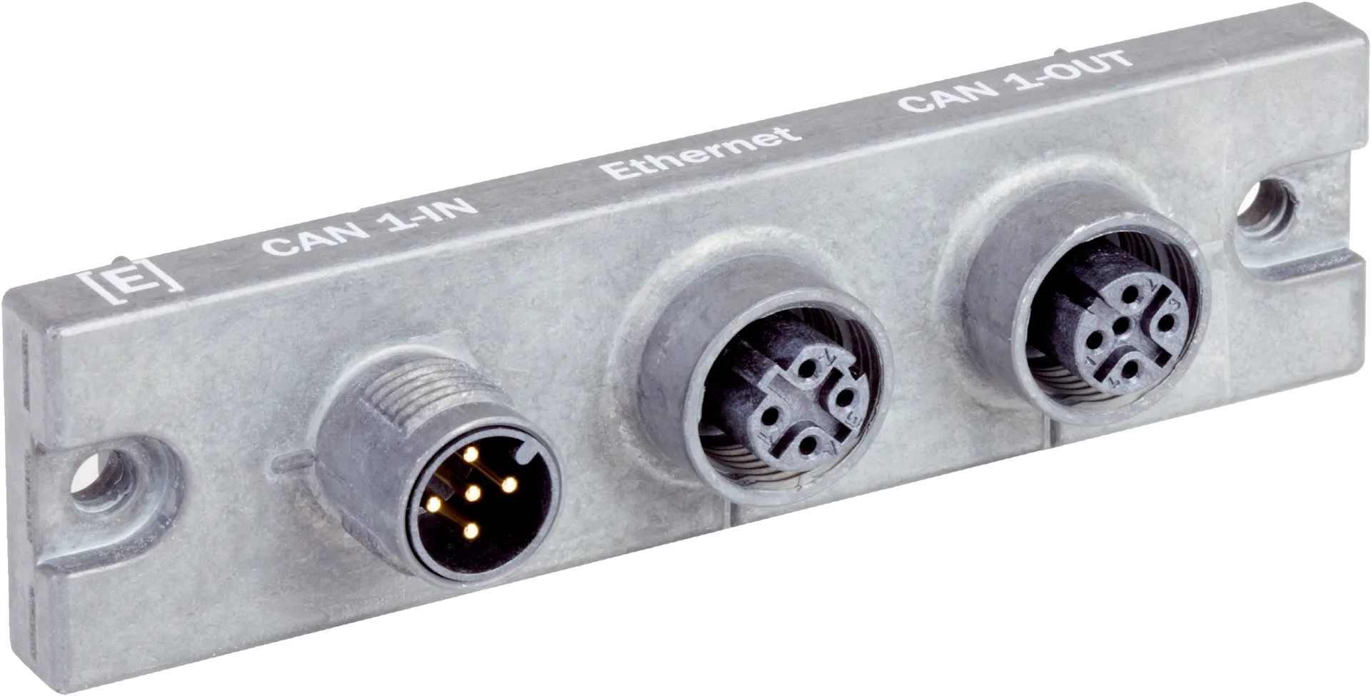 Connectors and cables | Other connectors and cables | Cloning plug | Connection type head A: Male connector, M12, 5-pin | Connection type head B: Female connector, M12, 5-pin | Signal type: Power, CAN, Ethernet | Items supplied: With three M12 cylindrical connectors (5-pin male connector, 5-pin female connector, 5-pin Ethernet) | Description: Power, CAN, Ethernet | Note: Plug housing CAN IN/OUT Ethernet