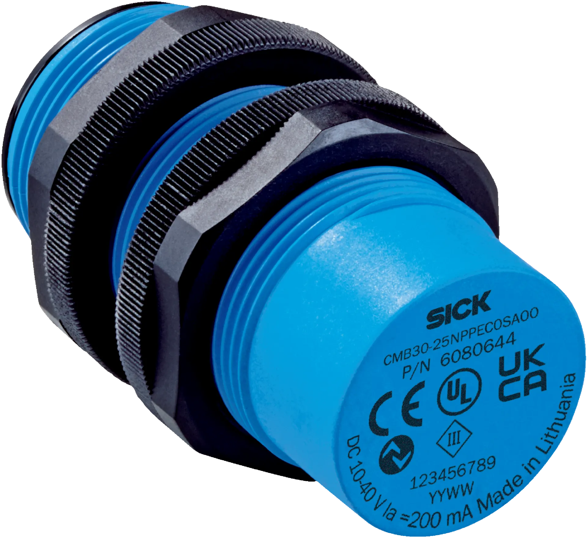 Capacitive proximity sensors | CMB | CMB30-25NPPEC0SA00 | Sensing range Sn: 0 mm … 25 mm | Installation type: Non-flush | Electrical wiring: DC 4-wire | Connection type: Male connector M12, 4-pin |…