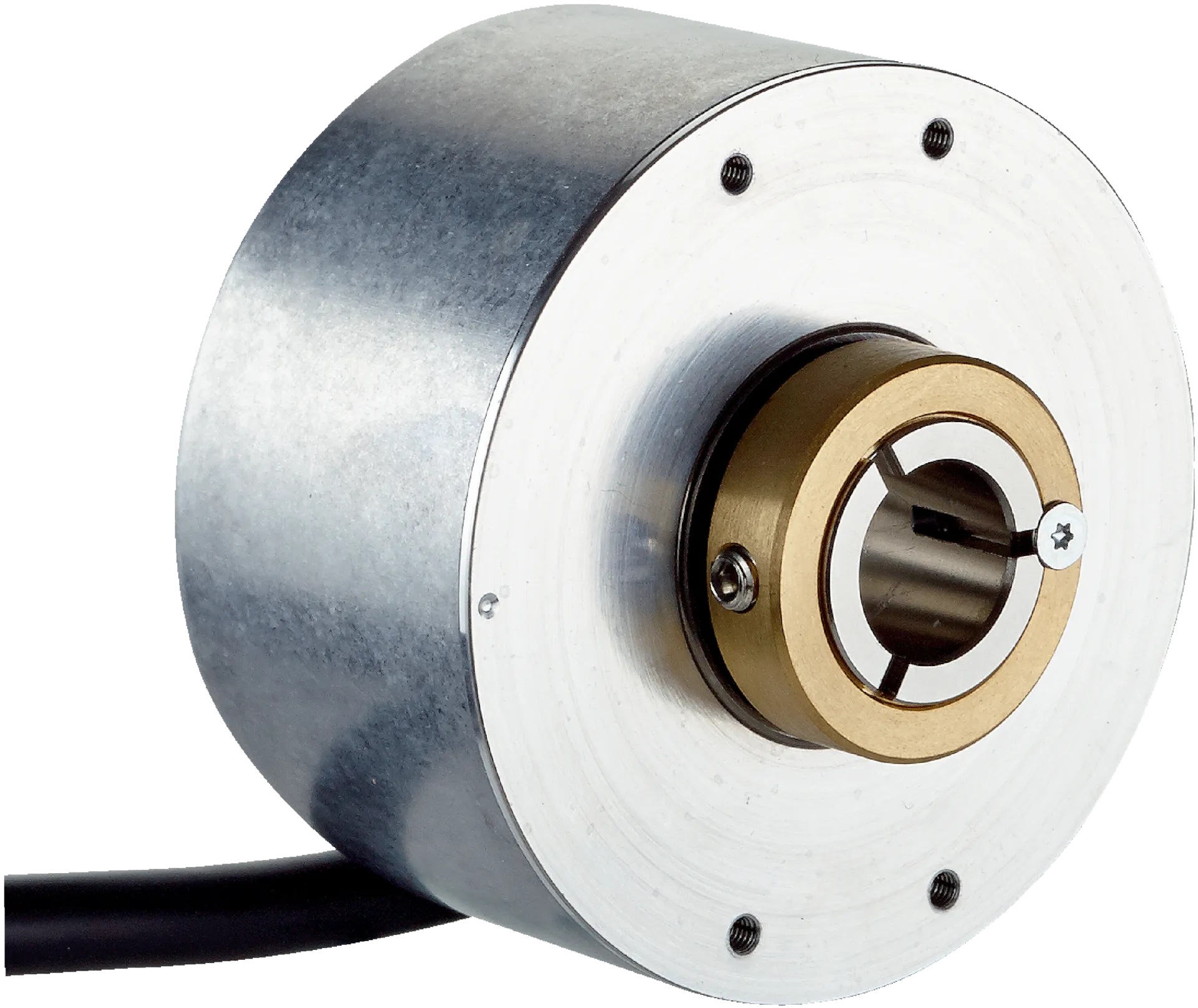 Incremental encoders | DBS60 | DBS60E-TDFLA1024 | Mechanical design: Through hollow shaft 10 mm (Front clamp) | Communication interface: 4.5 V … 30 V, TTL, HTL, HTL | Connection type: Cable, 8-wire, universal, 3 m | Pulses per revolution: 1,024 | Flange type / stator coupling: Without stator coupling, flange with 4 x M2,5