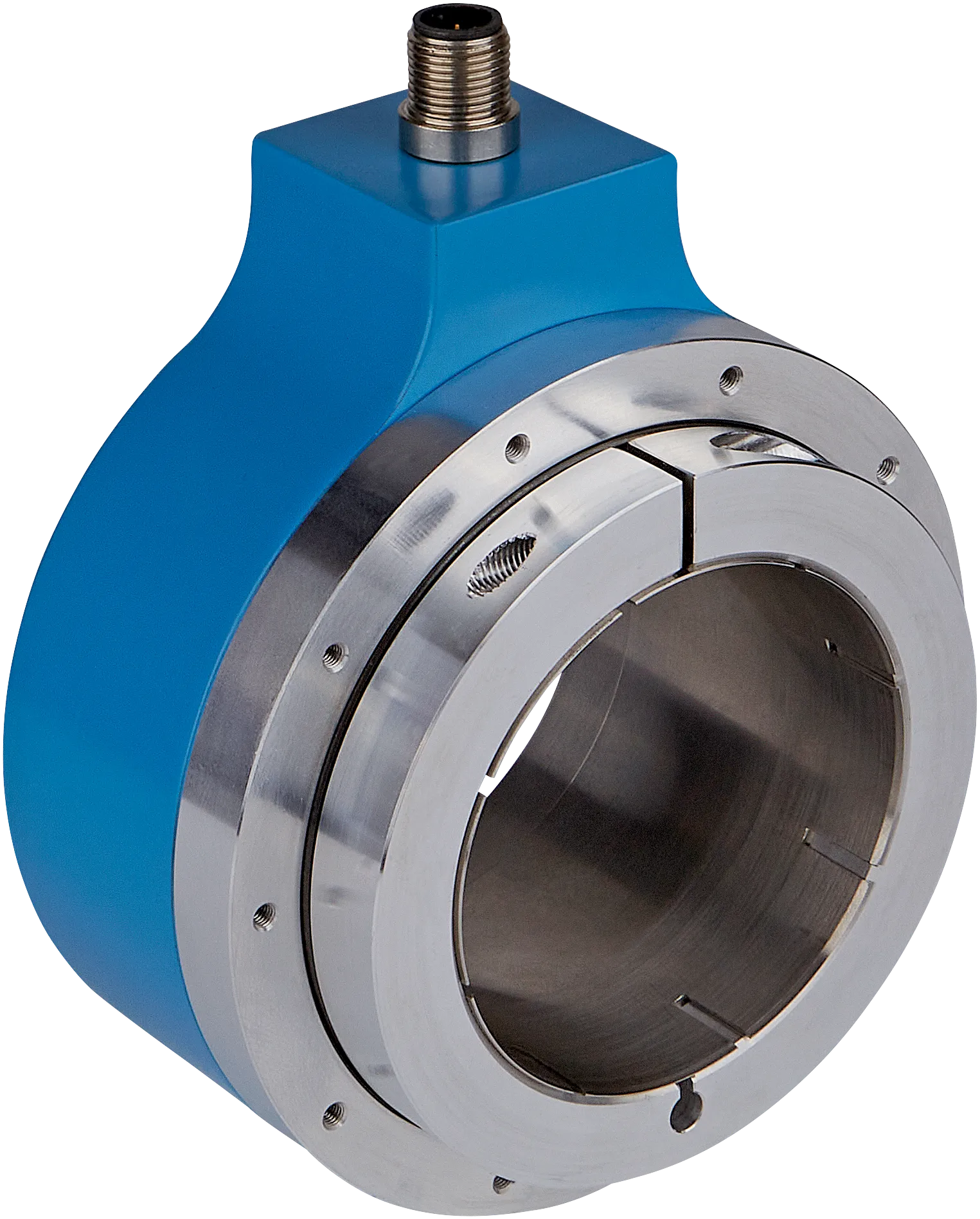 Incremental encoders | DGS80/90 | DGS90B-TWHC01024 | Mechanical design: Through hollow shaft 65 mm (Front clamp) | Communication interface: 5 V … 30 V, TTL, RS-422, non programmable | Connection type: Male connector, M12, 8-pin, radial | Pulses per revolution: 1,024 | Flange type / stator coupling: 1-sided stator coupling with slot available for order as accessory