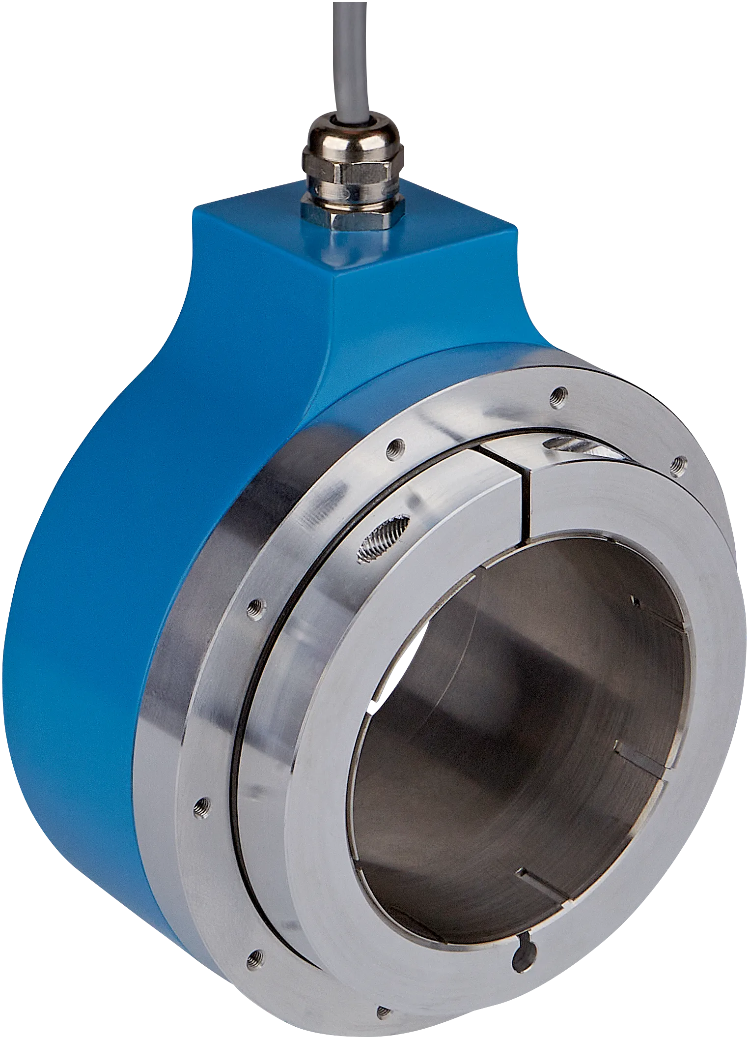 Incremental encoders | DGS80/90 | DGS90B-TWLK01024 | Mechanical design: Through hollow shaft 65 mm (Front clamp) | Communication interface: 5 V … 30 V, HTL, Push pull, non programmable | Connection type: Cable, 8-wire, radial, 1.5 m | Pulses per revolution: 1,024 | Flange type / stator coupling: 1-sided stator coupling with slot available for order as accessory