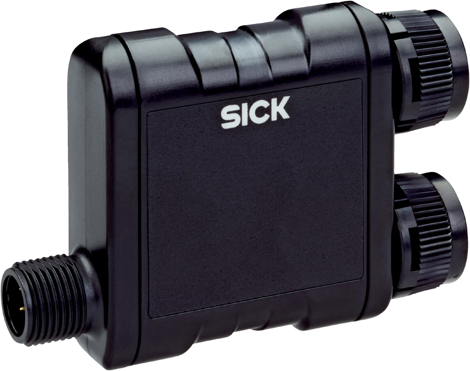 Safe series connection | Flexi Loop | FLA-YCON00001 | Flexi Loop component: Y-adapter | Description: The Flexi Loop Y-adapter (EMMS) splits the 8-pin connection of the FLN-EMSS1100108 in two 5-pin connections: One for dual-channel equivalent electro-mechanical safety switches and one for non-safe I/O signals.