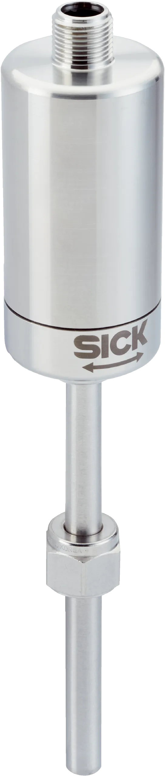 Flow sensors | T-Easic FTS | FTS-H101F04A | Wetted parts: Stainless steel 1.4404 (Ra ≤ 0,8 µm) | Process connection: Permanently installed clamping ring (only in conjunction with SICK T-connectors) | Output signal: 2 push-pull digital outputs (Q2 configurable for IO-Link; Q2 configurable as pulse output / digital input) for flow and temperature | Process temperature: –40 °C … +150 °C | Process pressure: –1 bar … 100 bar, 40 bar (with SICK T-connector DN15, DN25), 25 bar (with SICK T-connector DN40), 20 bar (with SICK T-connector DN50) | Probe length: 100 mm