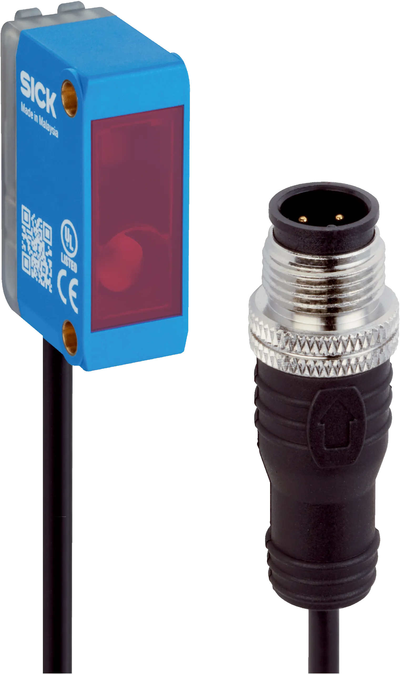 Photoelectric sensors | G6 | GLD6SP-34A121A0ZZZ | Sensing range min. / max.: 0.03 m / 6 m | Functional principle: Photoelectric retro-reflective sensor | Functional principle detail: With minimum distance to reflector (dual lens system) | Switching output: PNP | Switching mode: Light switching | Connection type: Cable with M12 male connector, 4-pin, 348 mm | Light source: PinPoint LED | Type of light: Visible red light | Housing material: ABS | Adjustment: None | Housing: Rectangular