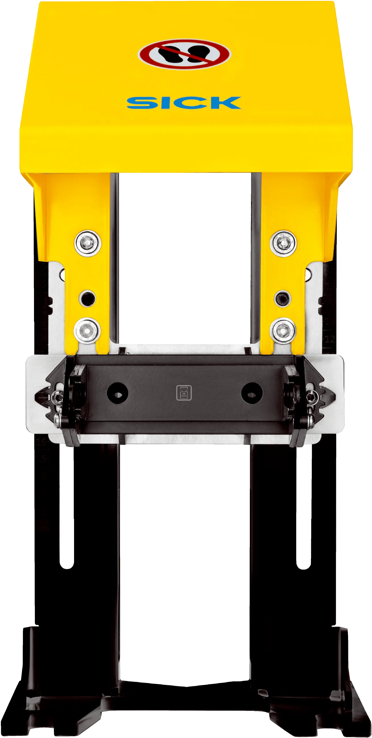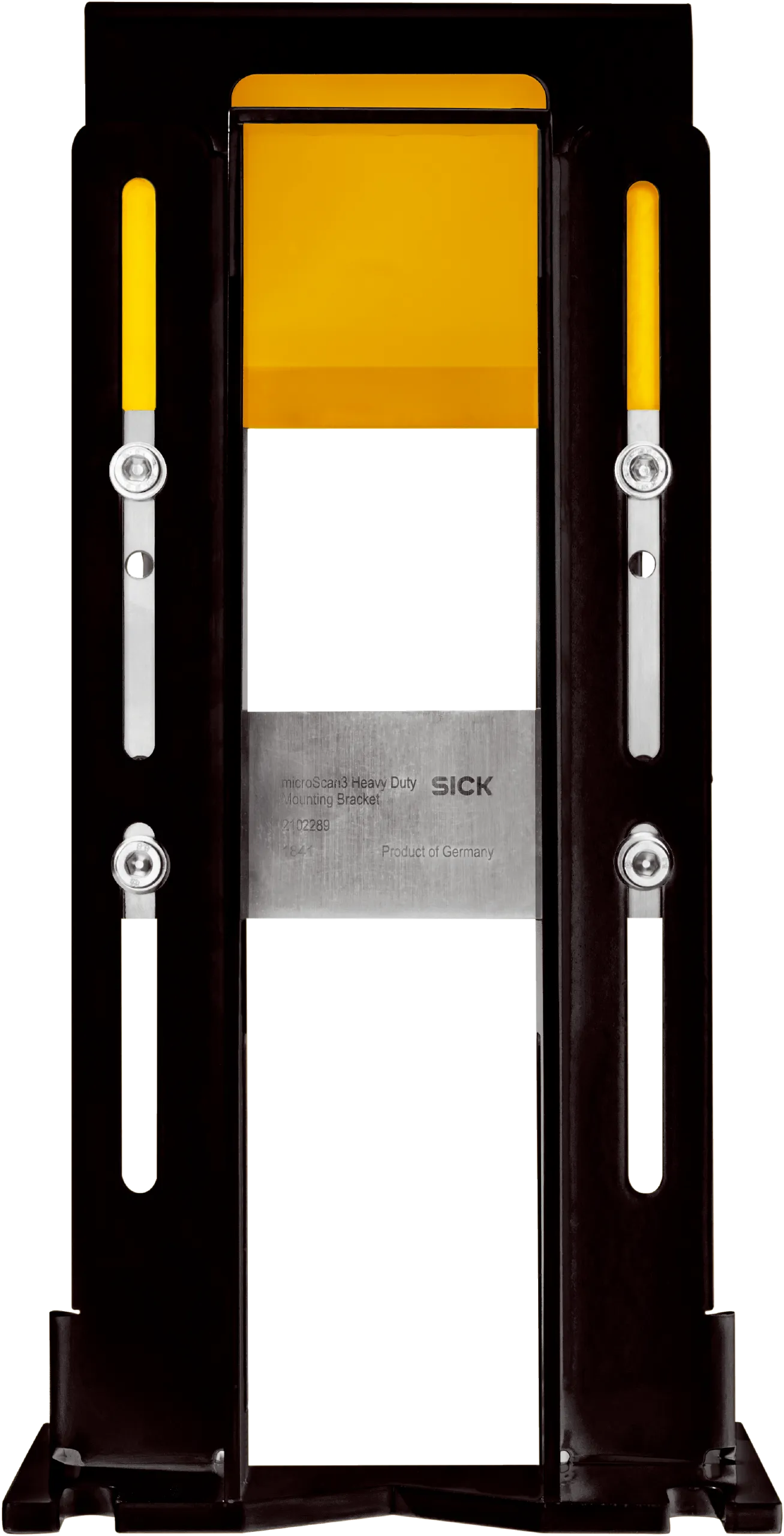 Mounting systems | Brackets | Heavy-duty mounting kit for floor mounting | Description: Mounting bracket, heavy-duty version, with protection cover, for floor mounting, height adjustment possible from 90 … 310 mm, scanner tilt angle: ± 5º. Additional mounting brackets are not required. | Dimensions (W x H x L): 200 mm x 366 mm x 269 mm | Material: Steel | Details: Steel, painted (RAL 1021) | Color: RAL 1021 (yellow) | Packing unit: 1 piece