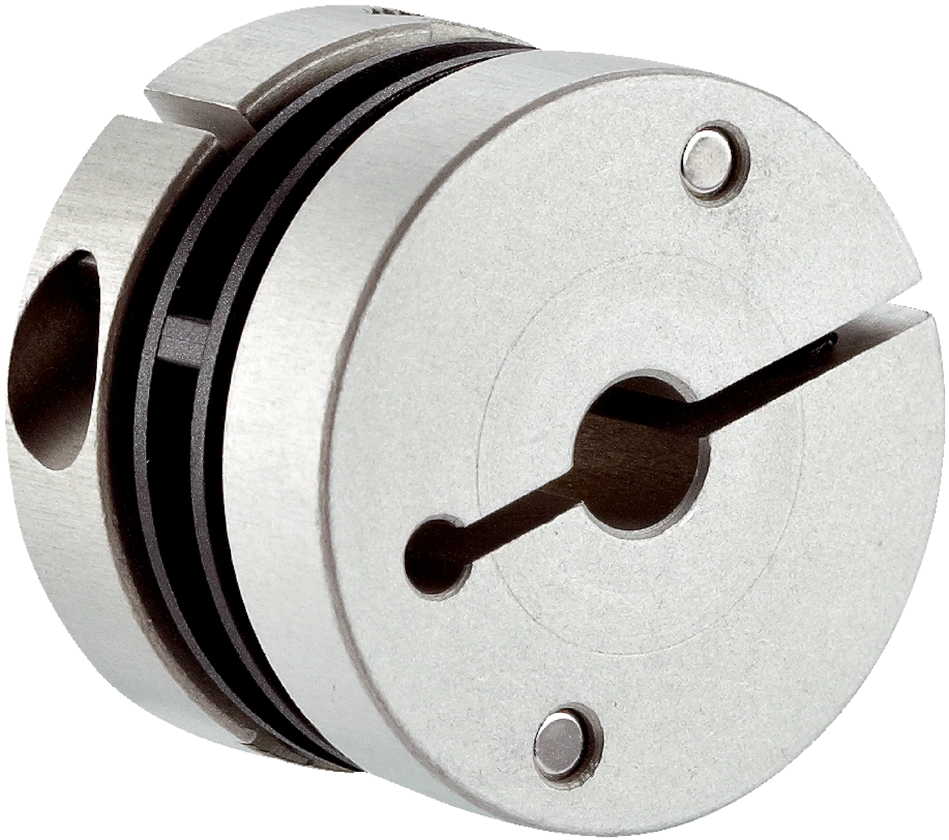 Shaft adaptation | Shaft couplings | KUP-1010-F | Product segment: Shaft adaptation | Product: Shaft couplings | Description: Spring washer coupling, shaft diameter 10 mm / 10 mm, maximum shaft offset, radial ± 0.3 mm, axial ± 0.4 mm, angle ± 2.5°, torsion spring stiffness 30 Nm/rad; material: aluminum flange, glass-fiber reinforced polyamide membrane and hardened steel coupling pin