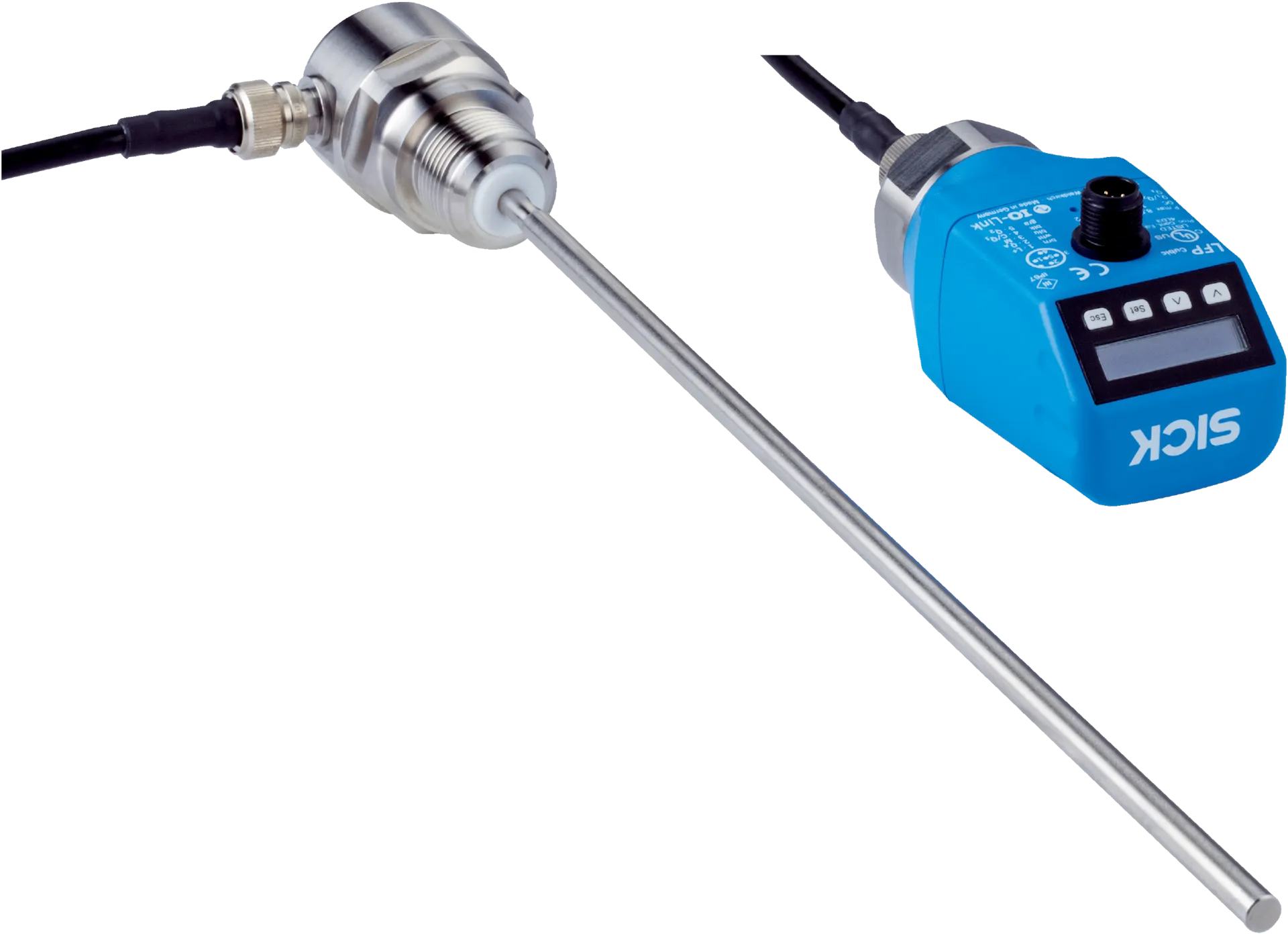 Level sensors | LFP Cubic | LFP0500-B4CMB | Communication interface: IO-Link | Process connection: ¾” NPT | Probe length: 500 mm | Probe type: Rod probe | Remote amplifier: Yes, length of cable 2 m |…