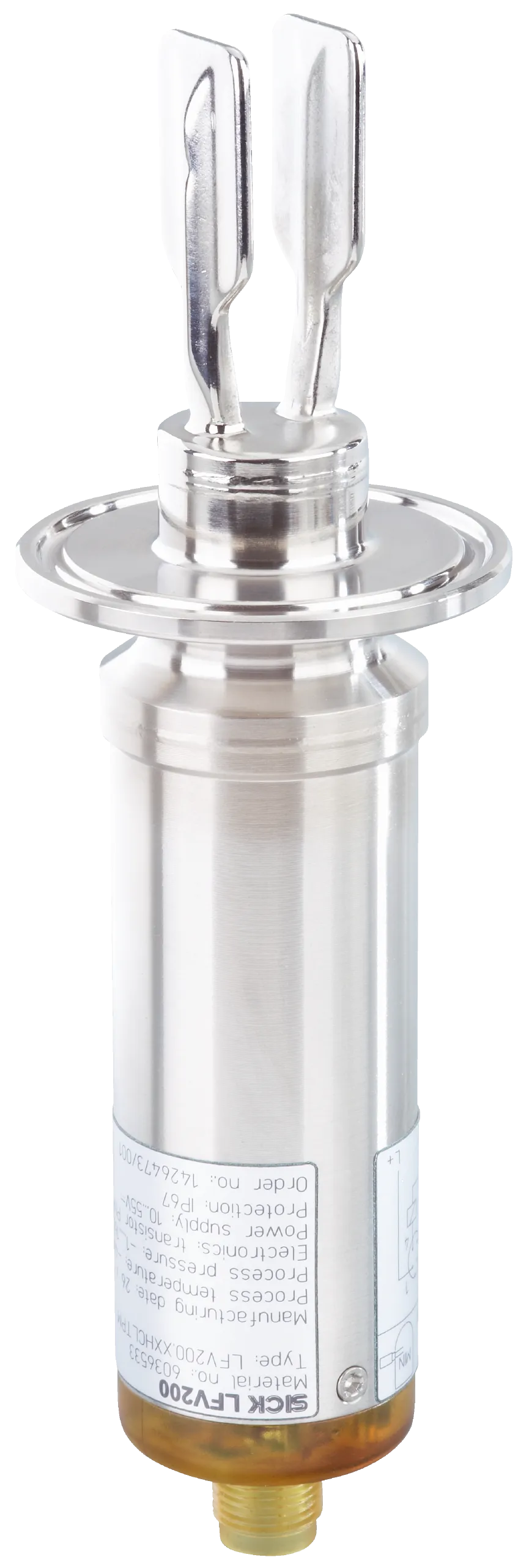 Level sensors | LFV200 | LFV200-XXHRLIPM | Communication interface: IO-Link | Process connection: Conical coupling DN 25 acc. to DIN 11851 withUnion nut (PN 40, 316L, Ra < 0.8µm) | Probe length: 67 mm…