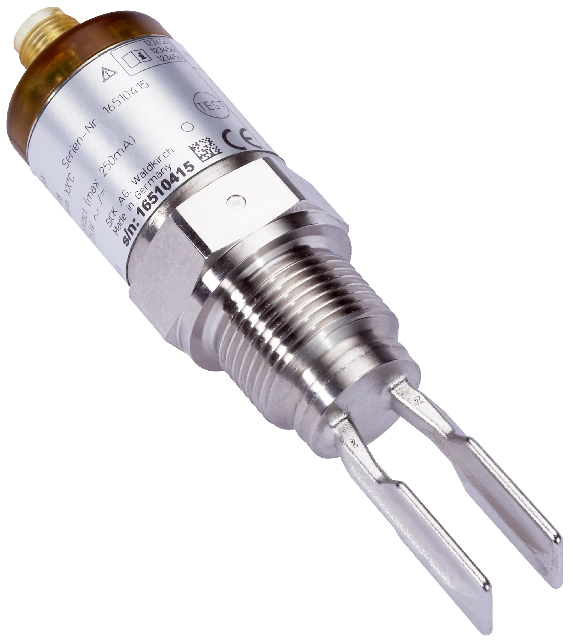 Level sensors | LFV200 | LFV200-XXTNBIPM | Communication interface: IO-Link | Process connection: ¾” NPT PN 64 | Probe length: 67 mm | Probe type: Tuning fork | Remote amplifier: No | Output signal: Transistor output PNP with IO-Link | Connection type: M12 round connector x 1, 4-pin | Process temperature: –40 °C … +150 °C | Process pressure: –1 bar … 64 bar | Wetted parts: Stainless steel 1.4404 / 316L | Housing material: Stainless steel 1.4404 / 316L, PEI | Enclosure rating: IP67 | Display: no | PWIS-cleaned: no | Bluetooth: no