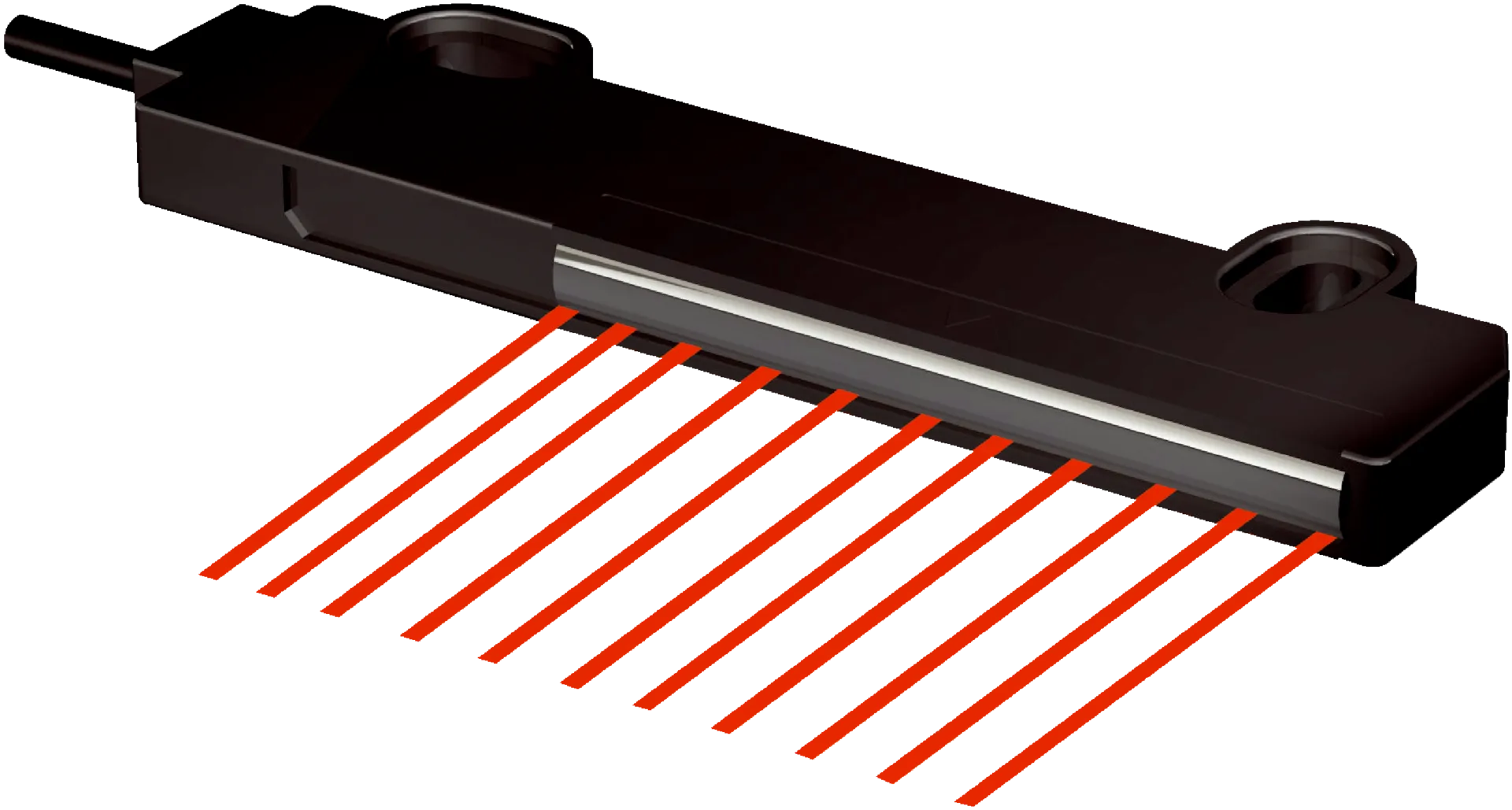 Fiber-optic sensors | Fiber-optic cables | LL3-TS40 | Functional principle: Through-beam system | Fiber-optic head design: Flat type, 90° deflection, Array | Fiber length: 2,000 mm | Fiber-optic head array width: 40 mm | Fiber material: Plastic | Jacket material: Plastic | Fiber head material: Plastic | Included with delivery: Mounting, 4 x M3 Phillips-head screw, FC fiber cutter (5304141), protective cladding for fiber head