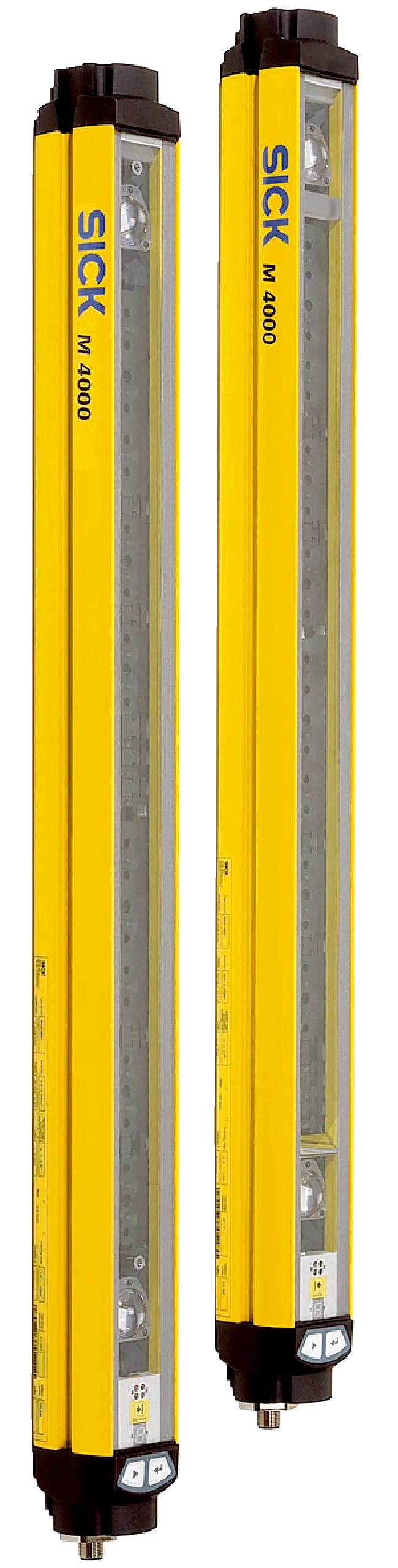 Safety light-beam sensors | M4000 Standard | M40S-034000AR0, M40E-034020RT0 | System part: Pair | Scanning range: 70 m | Number of beams: 3 | Beam separation: 400 mm | Connection type: Male connector M12, 8-pin | Additional reset connection: Female connector M12, 5-pin | Integrated laser alignment aid: no | End cap with integrated LED: yes