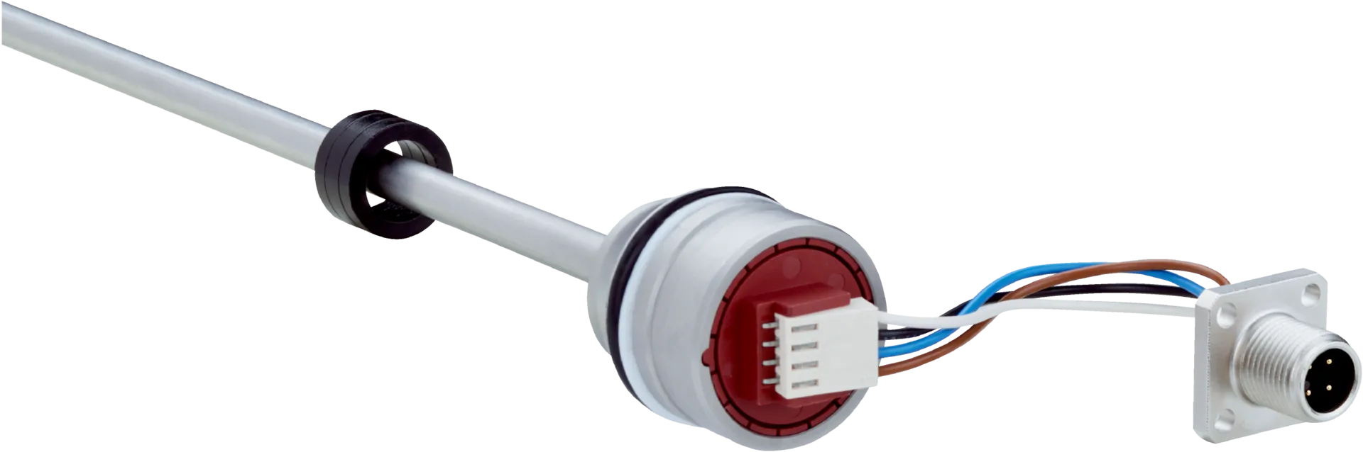 | M12 male connector | Glass fiber reinforced polyamide, nickel-/gold-plated brass contacts |
